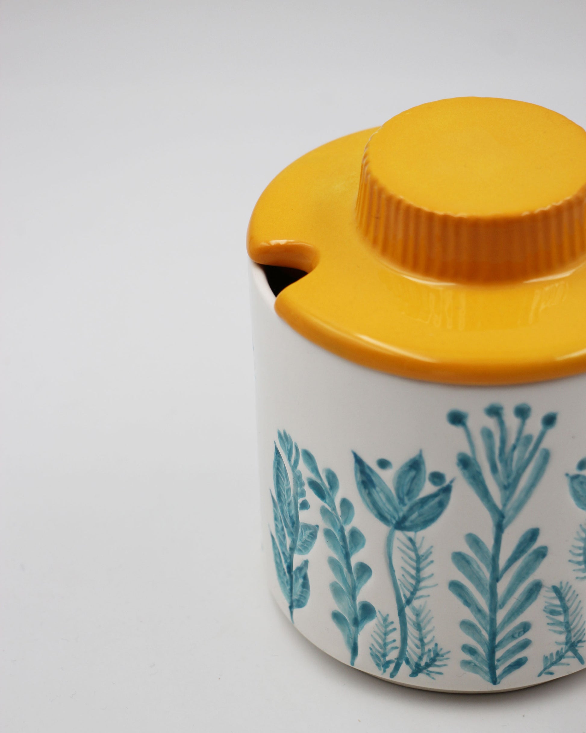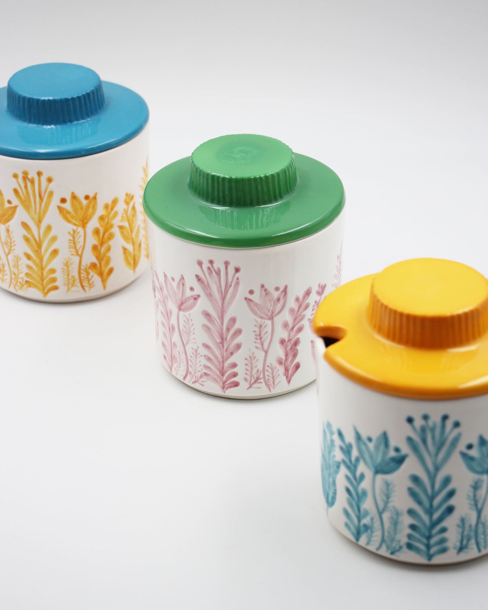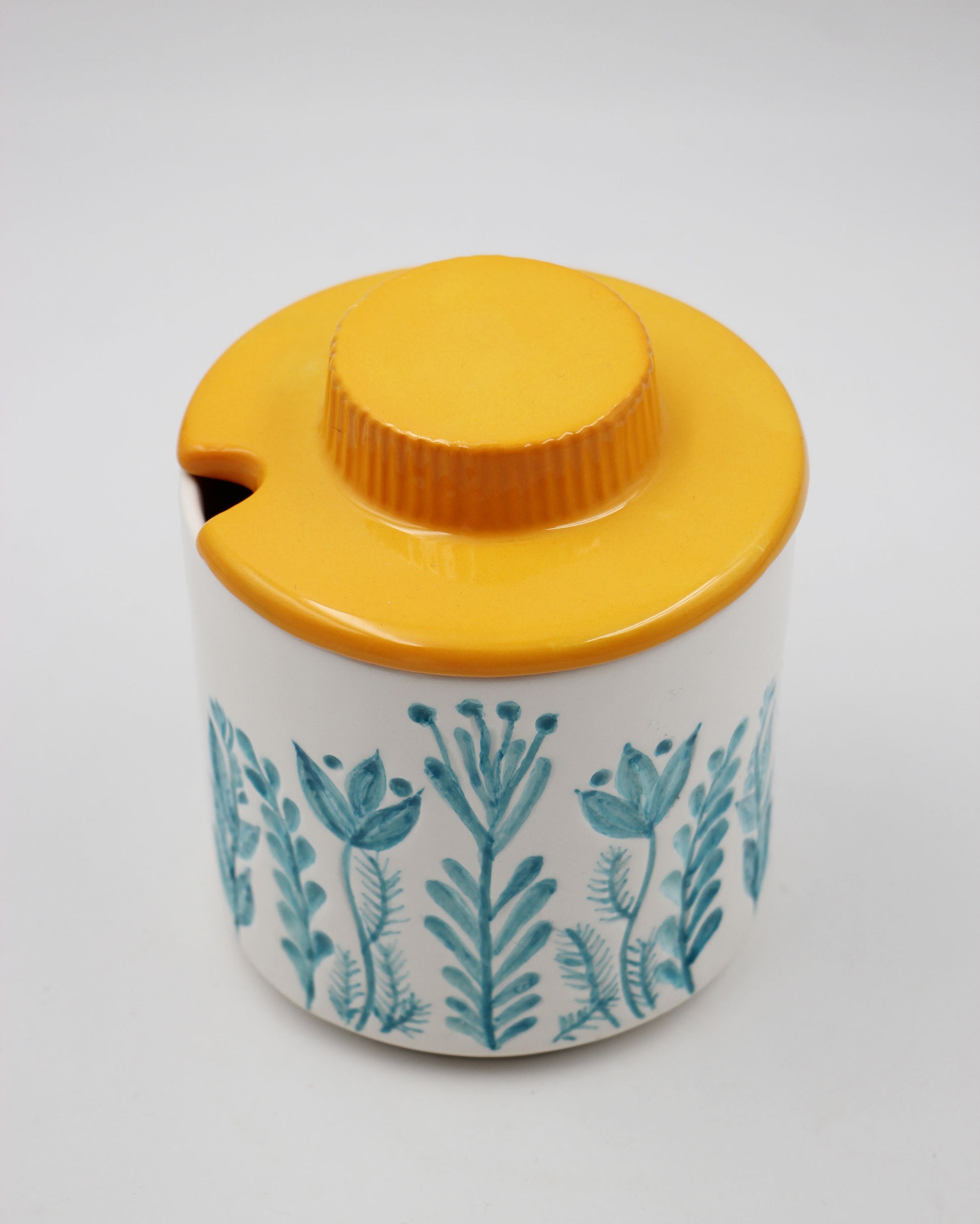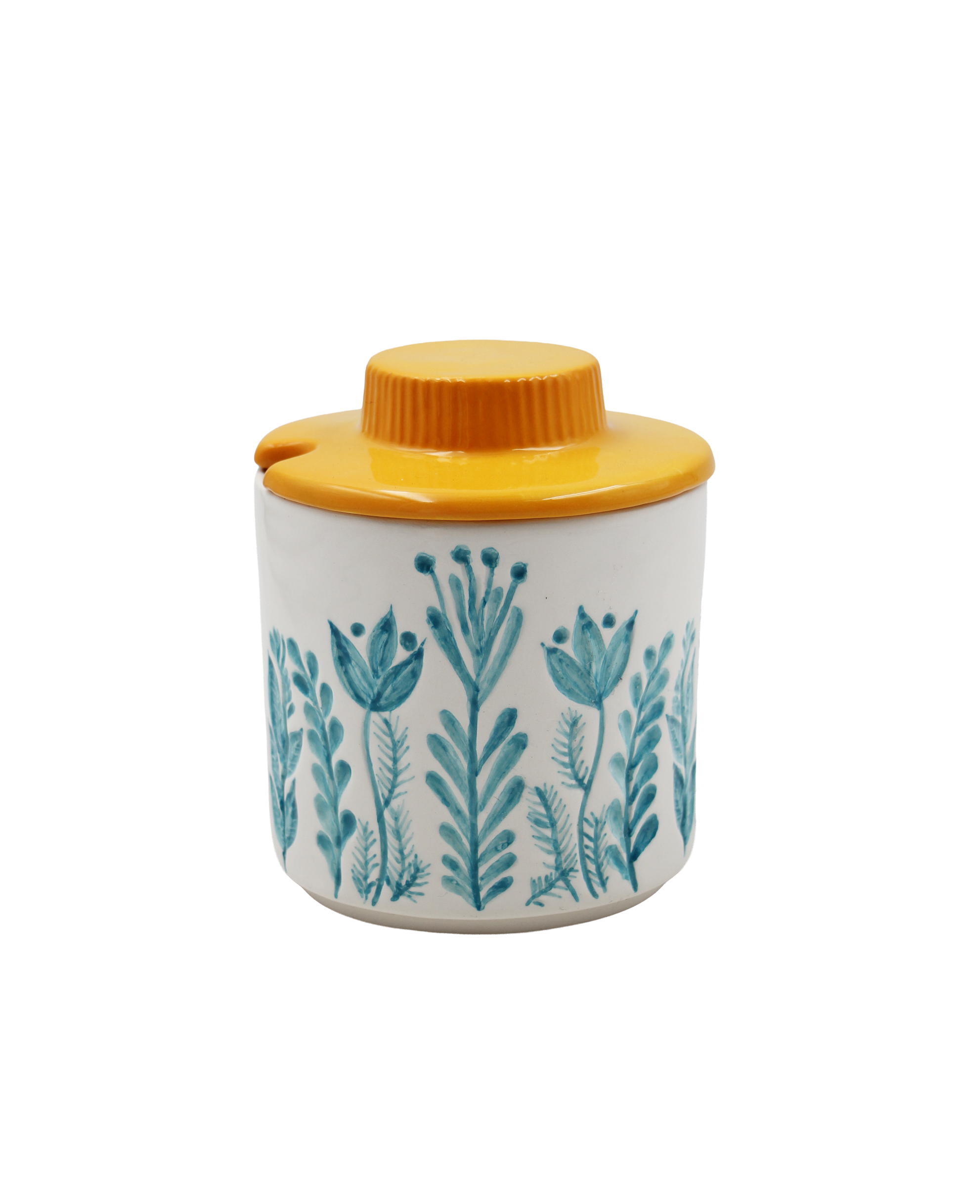 Sweetness meets artistry. Our hand-painted sugar jar keeps your sugar or small treats beautifully contained, bringing a soft, floral charm to your kitchen. Each jar is lovingly handmade, so no two are exactly alike.