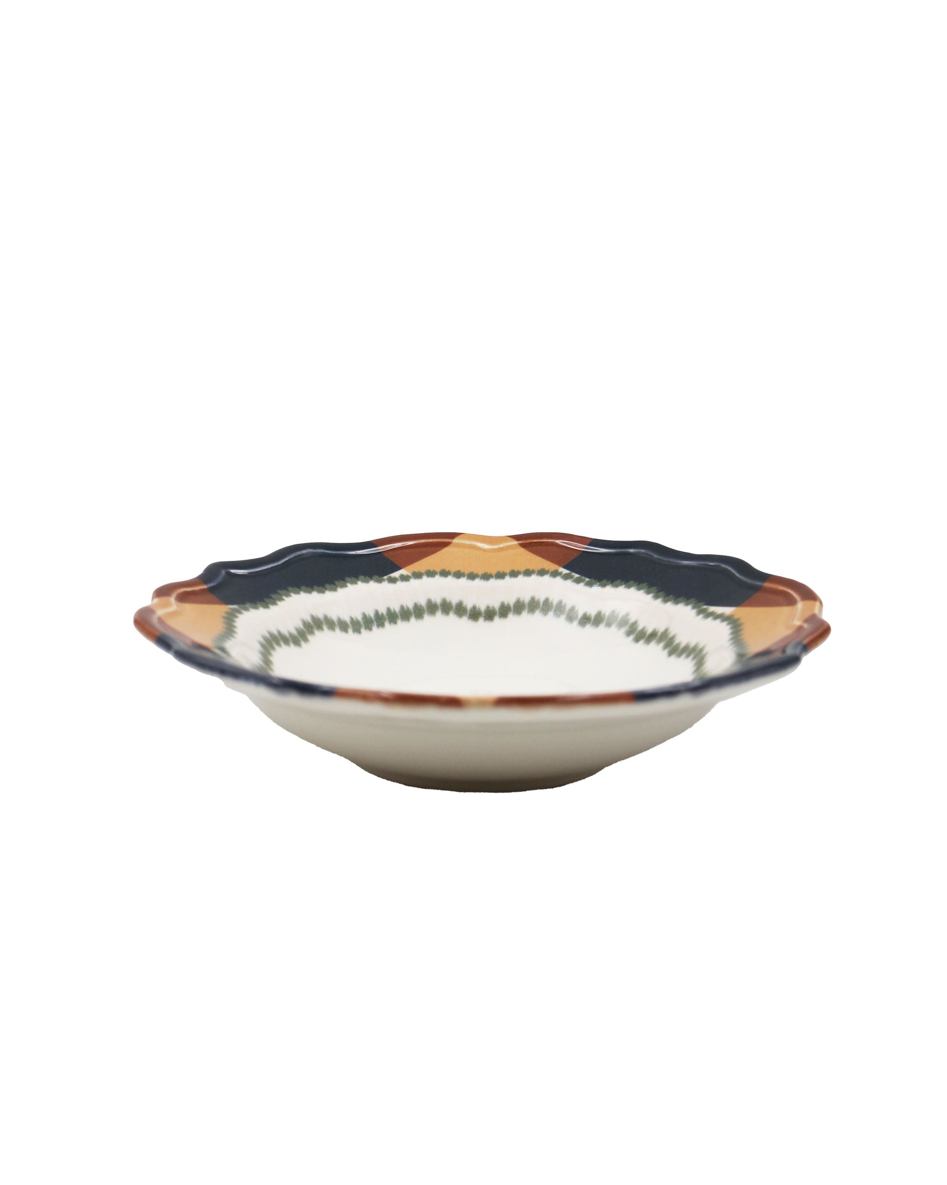 The star of your Portuguese Picnic. With bold brown and blue checks, this plate turns every meal into a statement. Deep, wavy edges with a bold pattern? Yes, please. Perfect for soups, stews, or anything with way too much sauce.